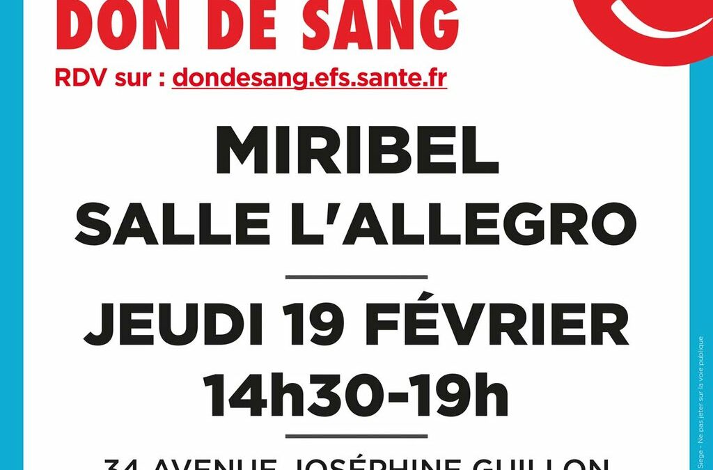 Prochaine collecte prévue le jeudi 19 février à 14h30 à l’Allégro de Miribel