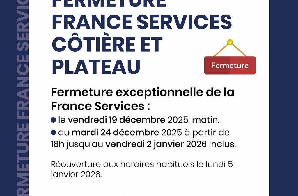 Fermetures exceptionnelles de France Services Côtière et Plateau