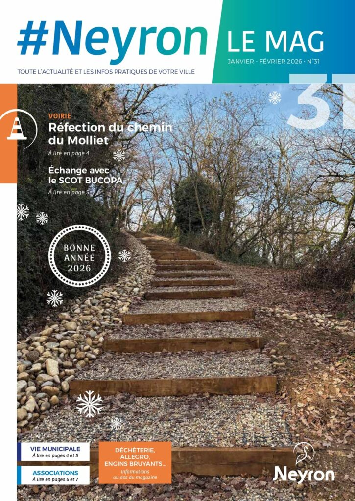 23/09/2024 Le guide des associations de Neyron est disponible ! Partager0 Publications connexes28/12/2025Mag janvier févrierPlus d'infos27/12/2025Collecte alimentaire pour les restos du coeurPlus d'infos25/12/2025Belles fêtes de fin d’annéePlus d'infos