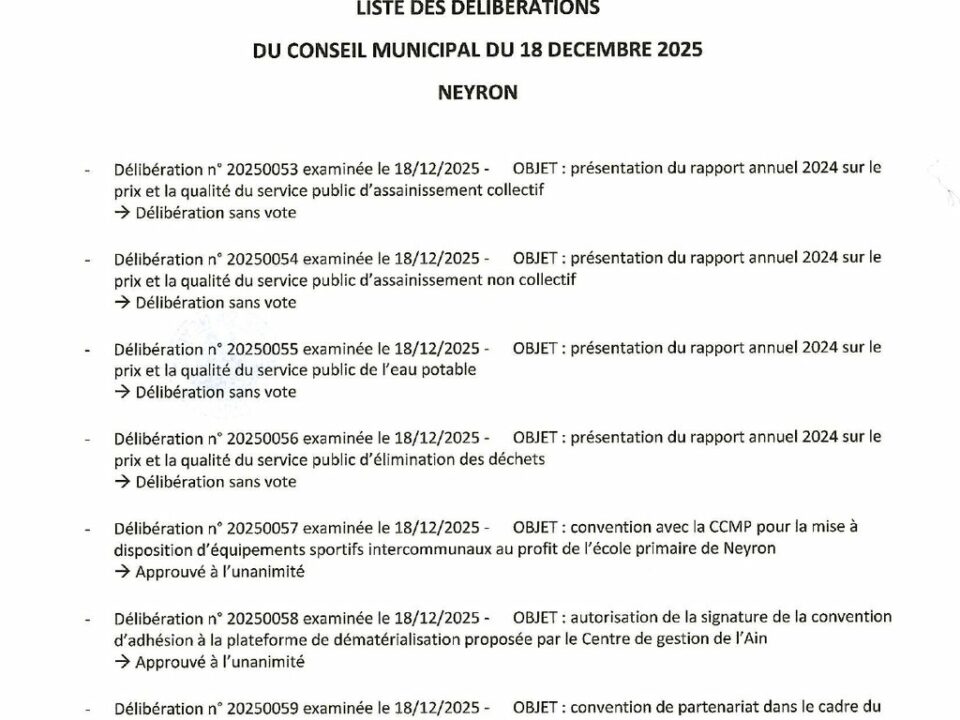 01/05/2025 🤗 Le mag de mai juin est disponible! Partager0 Publications connexes19/12/2025Fermeture exceptionnelle de la mairie vendredi 2 janvier 2026Plus d'infos18/12/2025Report collecte des ordures ménagèresPlus d'infos18/12/2025Jour Férié – Jeudi 25 décembre 2025Plus d'infos