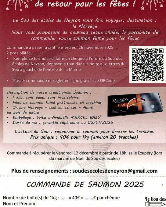 👉 Via HelloAsso : https://www.helloasso.com/associations/sou-des-ecoles-laiques-de-neyron/evenements/commande-de-saumon-fume-pour-les-fetes-2025